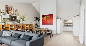 Rækkehuset har en grundstørrelse på 323 kvadratmeter og er udbudt til en pris på 3.495.000 DKK.